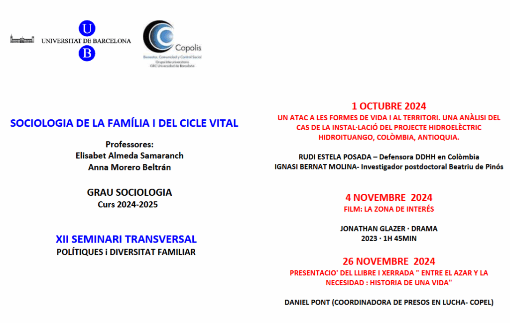 Per més informació: Seminari transversal Sociologia de la Família Curs 2024-2025